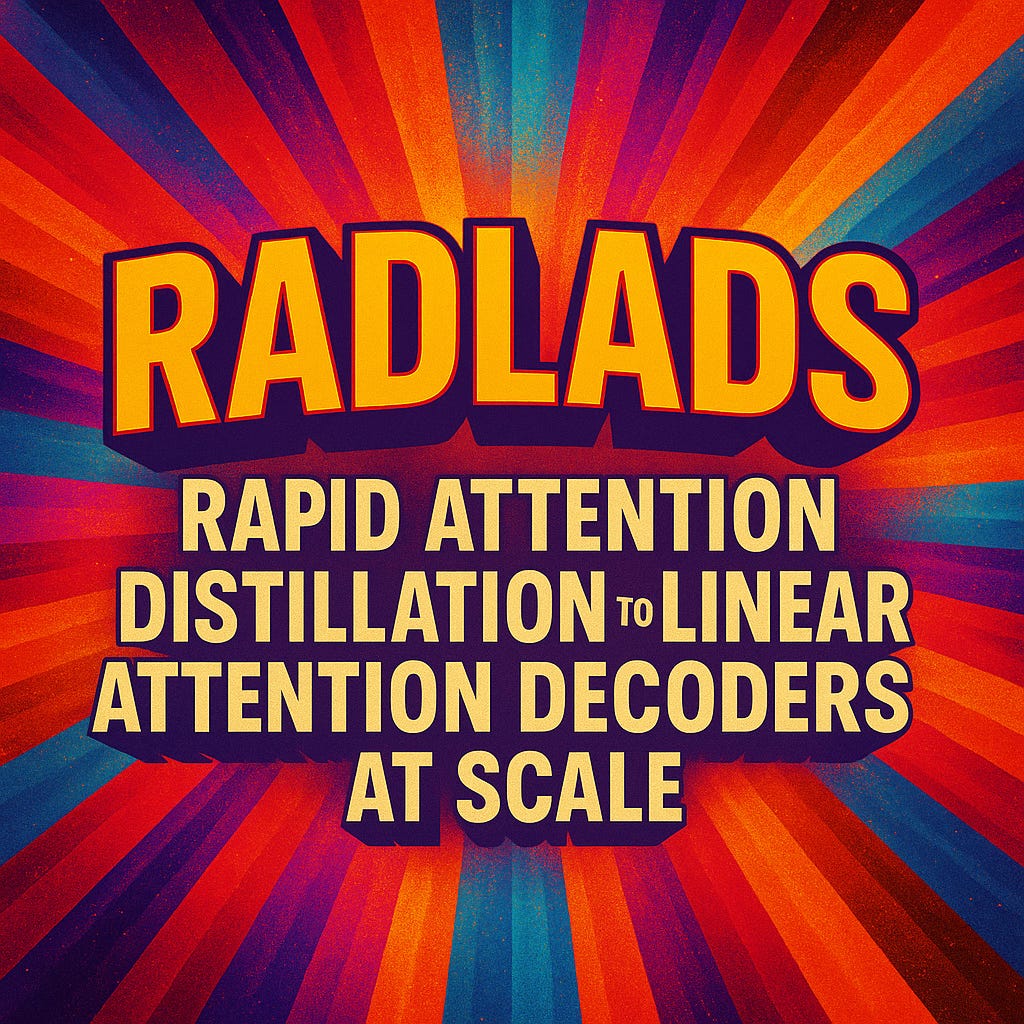 RADLADS (Rapid Attention Distillation to Linear Attention Decoders at Scale) is a new method for converting massive transformer models (e.g., Qwen-72B) into new AI models with alternative attention mechanisms—at a fraction of the original training cost.